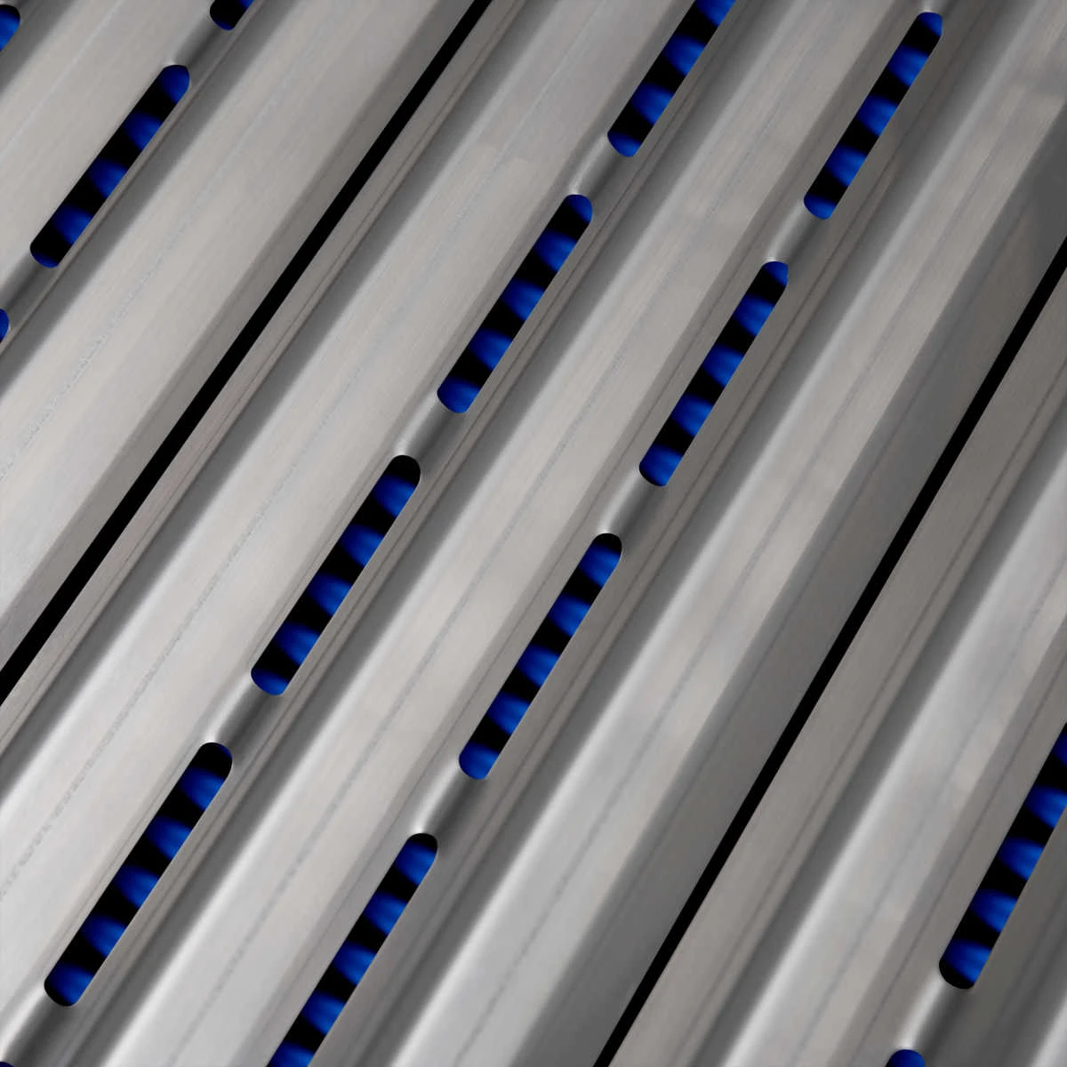 Mit dem Broil King Baron 590 müsst Ihr keine Kompromisse mehr eingehen. Der Gasgrill ist mit 5 Dual Tube Edelstahl Stabbrennern ausgestattet, die für eine Leistung von 15,5 kW sorgen. Damit könnt Ihr Euer Grillgut scharf anbraten und es anschließend bei geschlossenem Deckel langsam weiter garen. Gerade die Möglichkeit des direkten und indirekten Grillens ist eine hervorzuhebende Stärke des Broil King Baron 590. Ebenfalls zu betonen ist das Edelstahl Flav-R-Wave Verdampfersystem sowie die massiven doppelseitig verwendbaren Gussroste, die die E