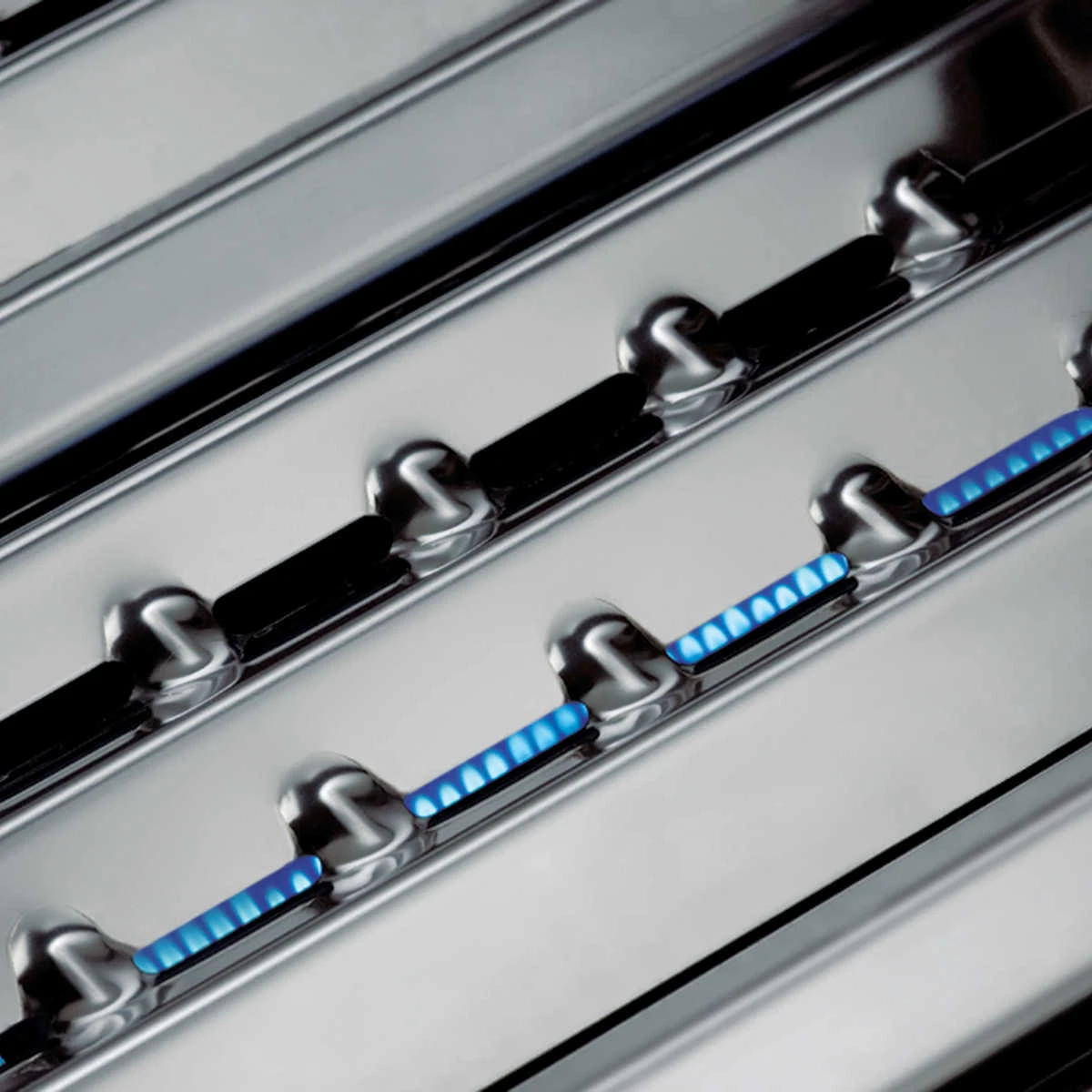Unter den Gussrosten des Regals 570 befinden sich das Dieses System sorgt dafür, dass die Flammen der Stabbrenner gleichmäßig den Grillrosten einheizen. Auf der grillt Ihr einiges an Fleisch, Gemüse und Fisch gleichzeitig. Mit dem , haltet Ihr ohne Probleme das Essen vom Grill warm.