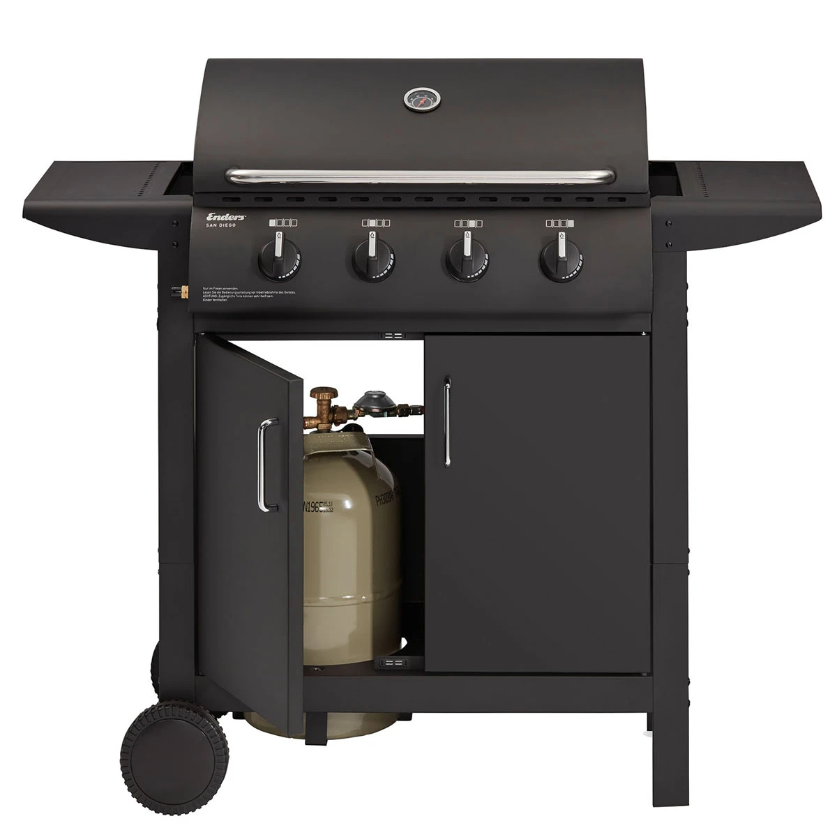 Der Enders San Diego 4 ist das richtige Grillmodell für ambitionierte BBQ-Anfänger, Balkonbesitzer und Gelegenheitsgriller. Ausgestattet mit allen Basics, die Ihr für feurigen Grillgenuss benötigt, hält sie sich in schlichtem Mattschwarz dezent im Hintergrund. Verstecken braucht sich der San Diego 4 trotzdem nicht. Scharf anbraten, slow & low grillen, schmoren und backen: Mit 4 Brennern für direktes und indirektes Grillen, einer stabilen Garhaube, massiven Grillrosten aus Edelstahl und einer großzügigen Grillfläche gelingen Euch vielfältige Grillmenüs – da geht bei kleinen und großen Grillevents garantiert niemand hungrig nach Hause.