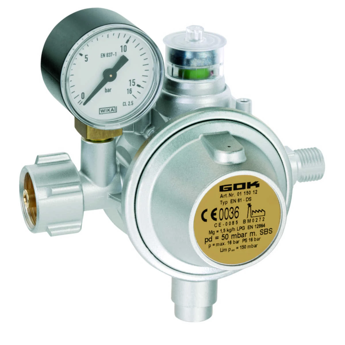 Niederdruckregler Typ EN61-DS mit Schlauchbruchsicherung EFV (SBS) mit Manometer