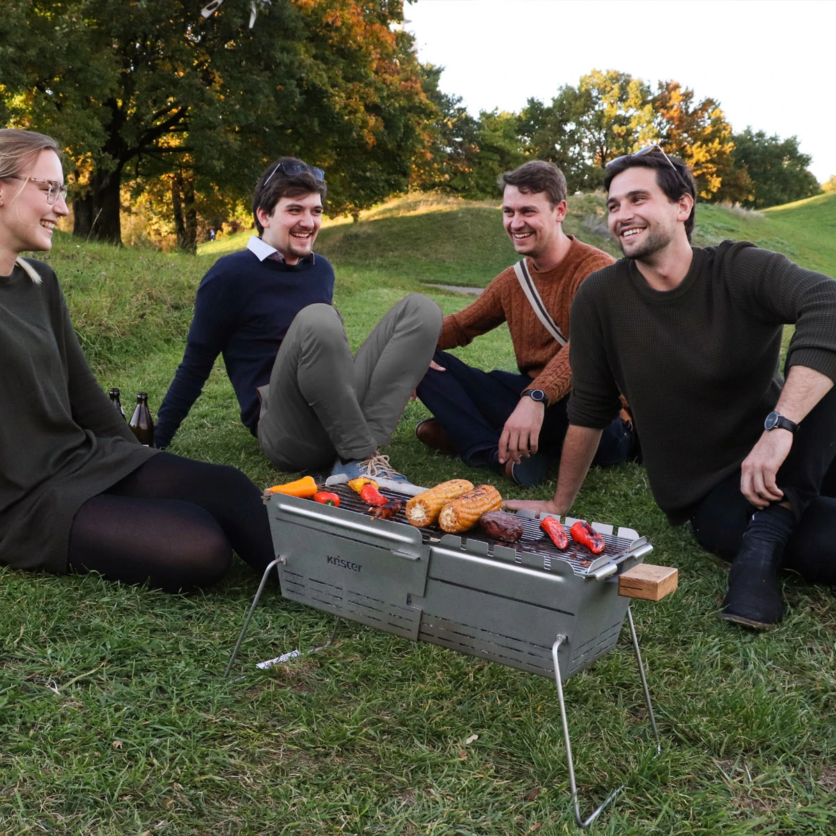 Der tragbare Edelstahlgrill aus dem Sortiment der Münchner Start-up Firma Knister ist das Premium-Modell für jeden, der gerne unterwegs eine spontane Grillmahlzeit genießt. Ob Fahrradtour in den Park, Zelten am Strand oder Urlaub auf Balkonien – der Knister Grill Premium bietet 2 bis 6 Personen hervorragende Grillperformance im kompakten Format.