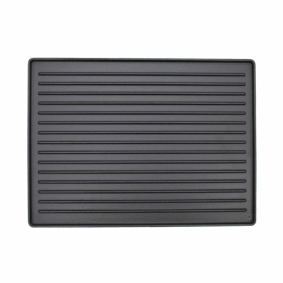 Die wendbare Grillplatte könnt Ihr ganz einfach anstatt zwei Grillrost-Elemente verwenden und beidseitig nutzen. Sie ist passgenau einsetzbar und bildet mit dem angrenzenden Grillrost eine ebene Fläche – so bleibt alles an seinem Platz und die vorhandene Grillfläche wird optimal genutzt. Je nach Bedarf kann die glatte oder die geriffelte Seite benutzt werden. Mit gleichmäßiger Wärmeverteilung und optimaler Hitzespeicherung sorgt die gusseiserne Griddleplatte von SANTOS für perfekte Grillergebnisse.