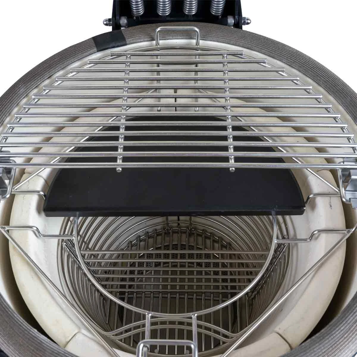 - für indirektes Garen und langanhaltend konstante Temperaturen – beste Voraussetzungen für einen langsamen und gleichmäßigen Garprozess. Mit einem geteilten Deflektorstein sind außerdem verschiedene Grillzonen für direktes und indirektes Grillen möglich.