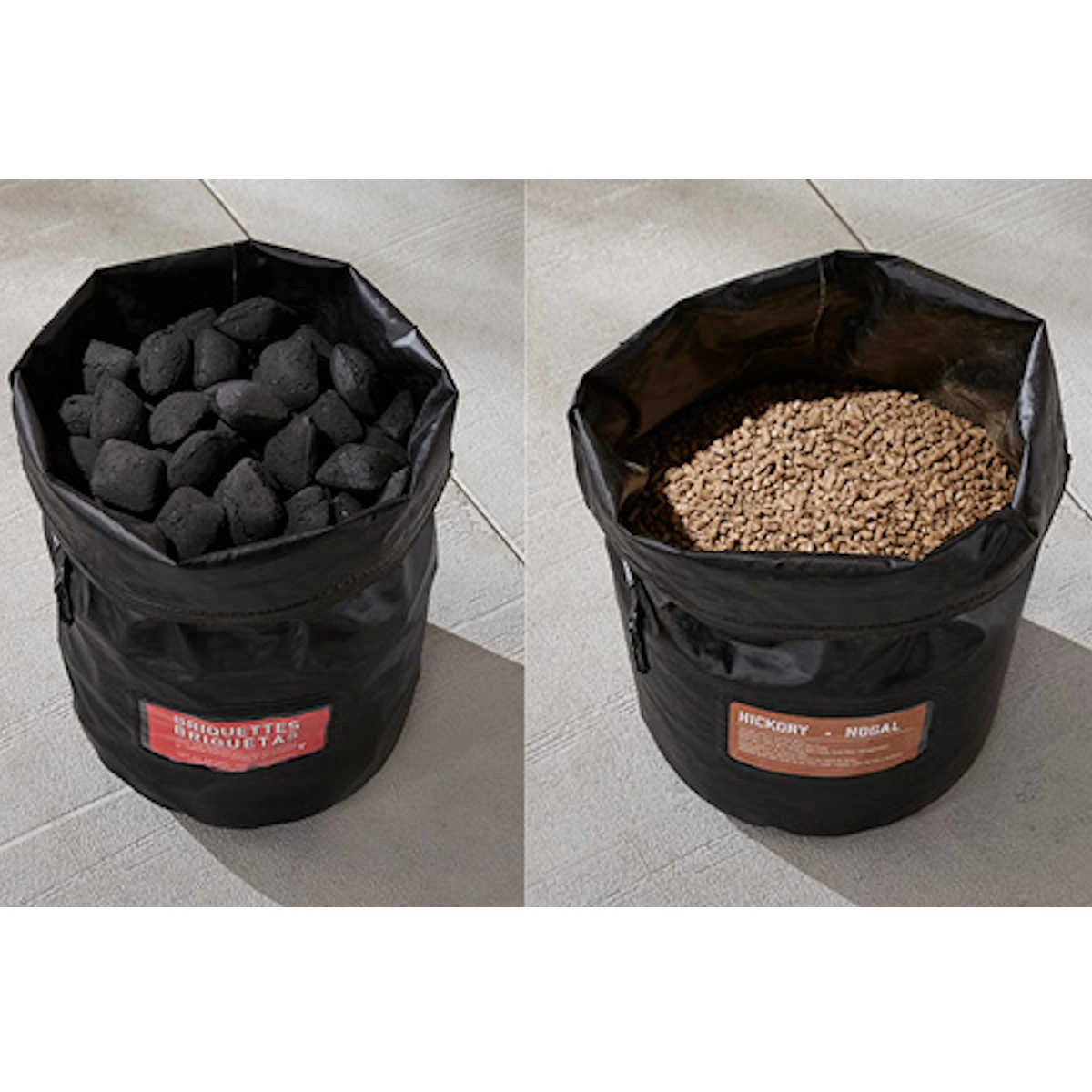 Mit dem Weber Aufbewahrungsbeutel für Brennstoffe bleiben Eure Holzpellets oder Holzkohle stets trocken und immer einsatzbereit. Der Beutel ist aus witterungsbeständigem Material und bietet Kapazität für bis zu ca. 9 kg Brennstoff. Dank des praktischen Tragegriffs könnt Ihr Euren Brennstoff auch zur spontanen Gartenparty mitnehmen.
